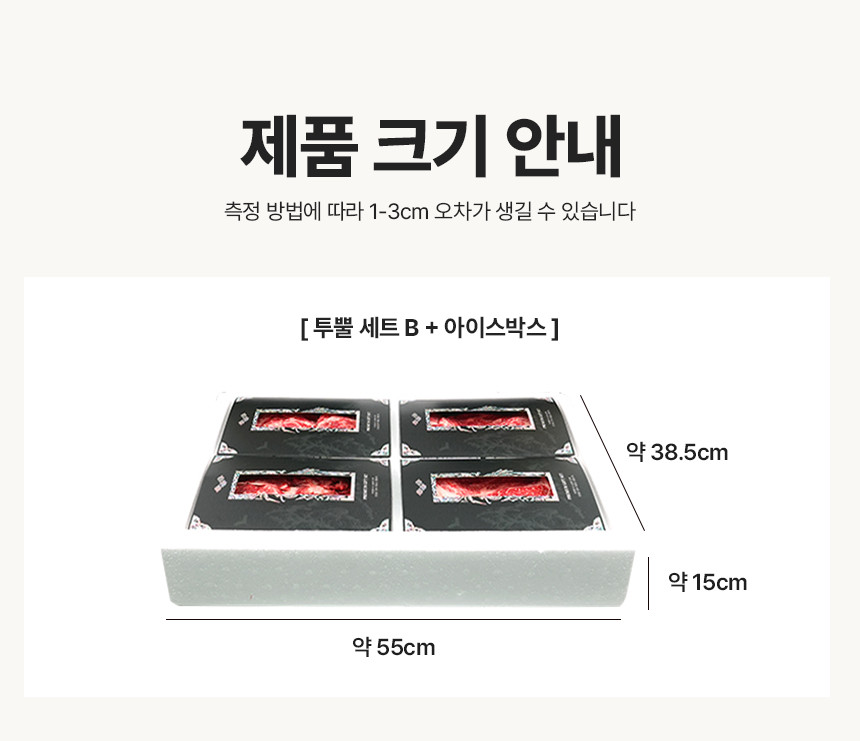 - 한우선물세트는 모양을 잡기 위해서 특수부위의 중량이 정해저 있지 않은점 양해 부탁드리며 제품 총 중량은 맞춰 드립니다.
