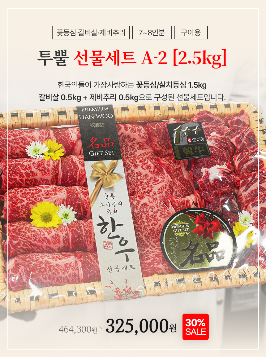 - 한우선물세트는 모양을 잡기 위해서 특수부위의 중량이 정해저 있지 않은점 양해 부탁드리며 제품 총 중량은 맞춰 드립니다.