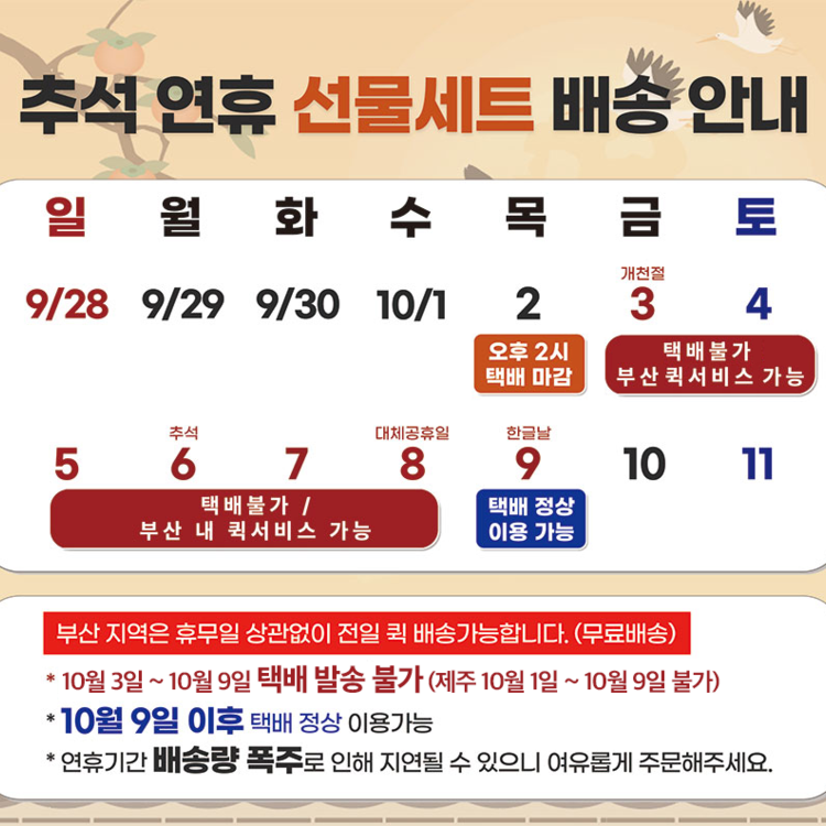 - 주문은 결제완료 순서대로 배송됩니다.