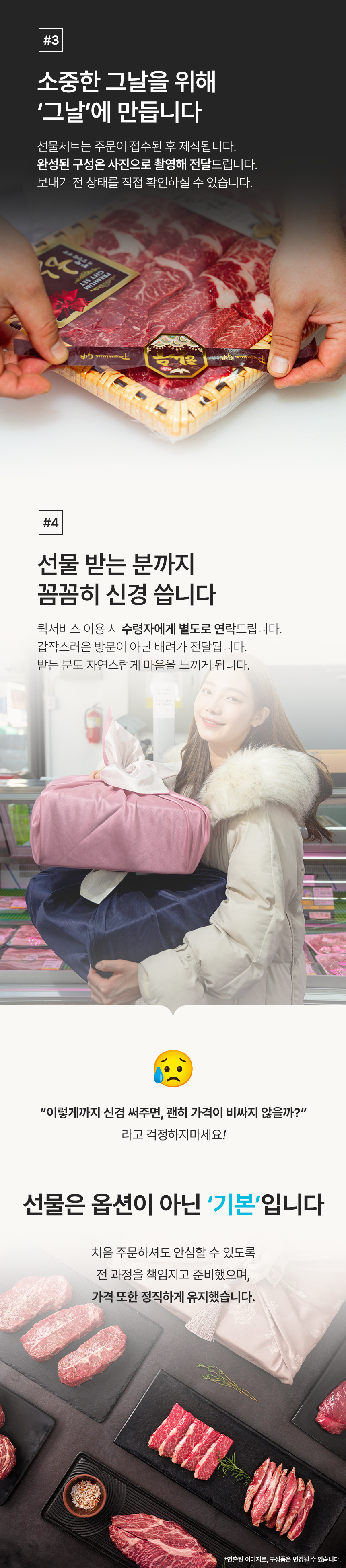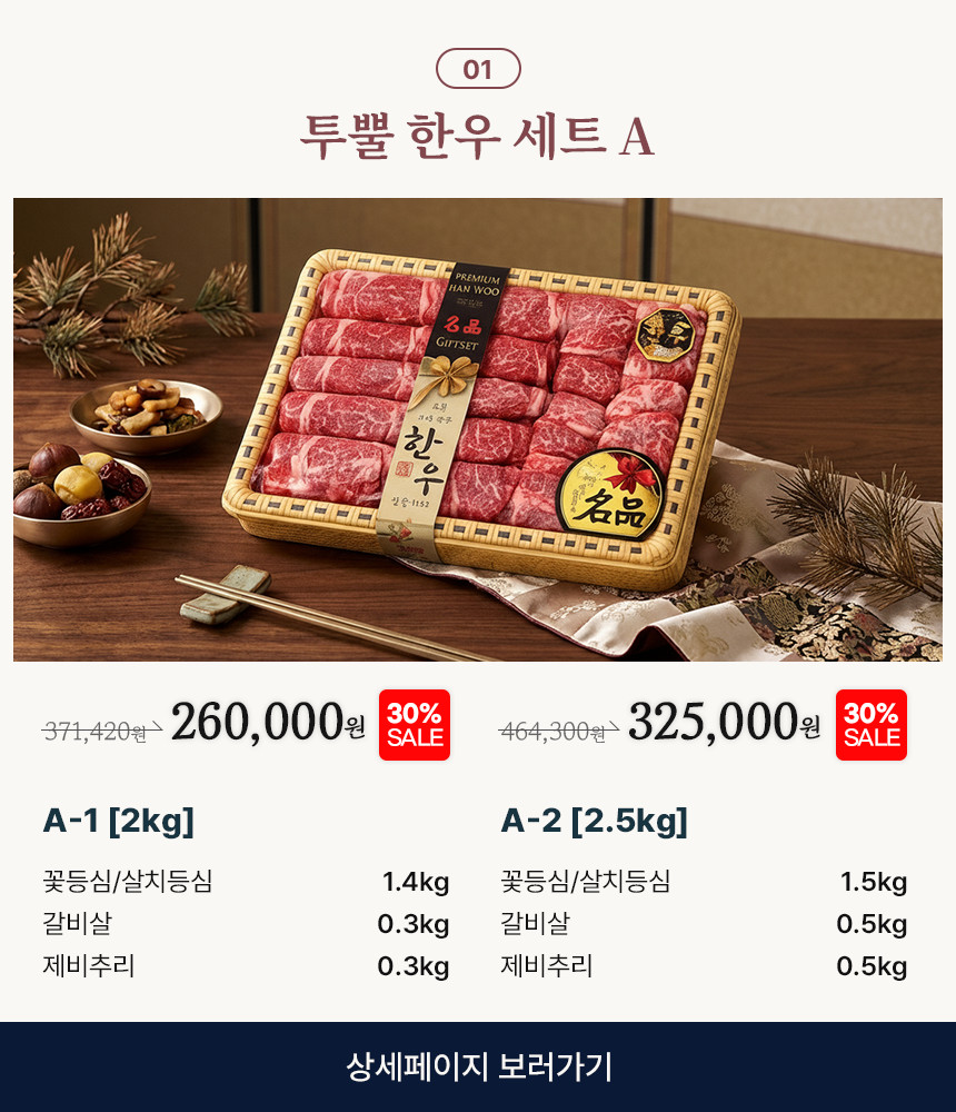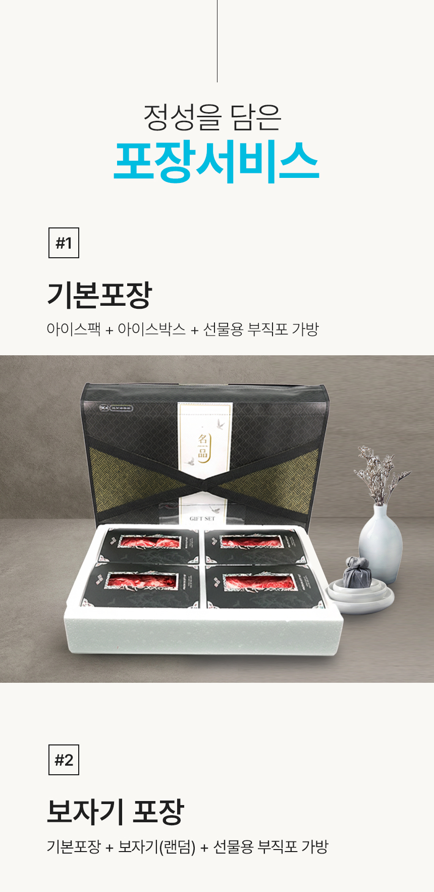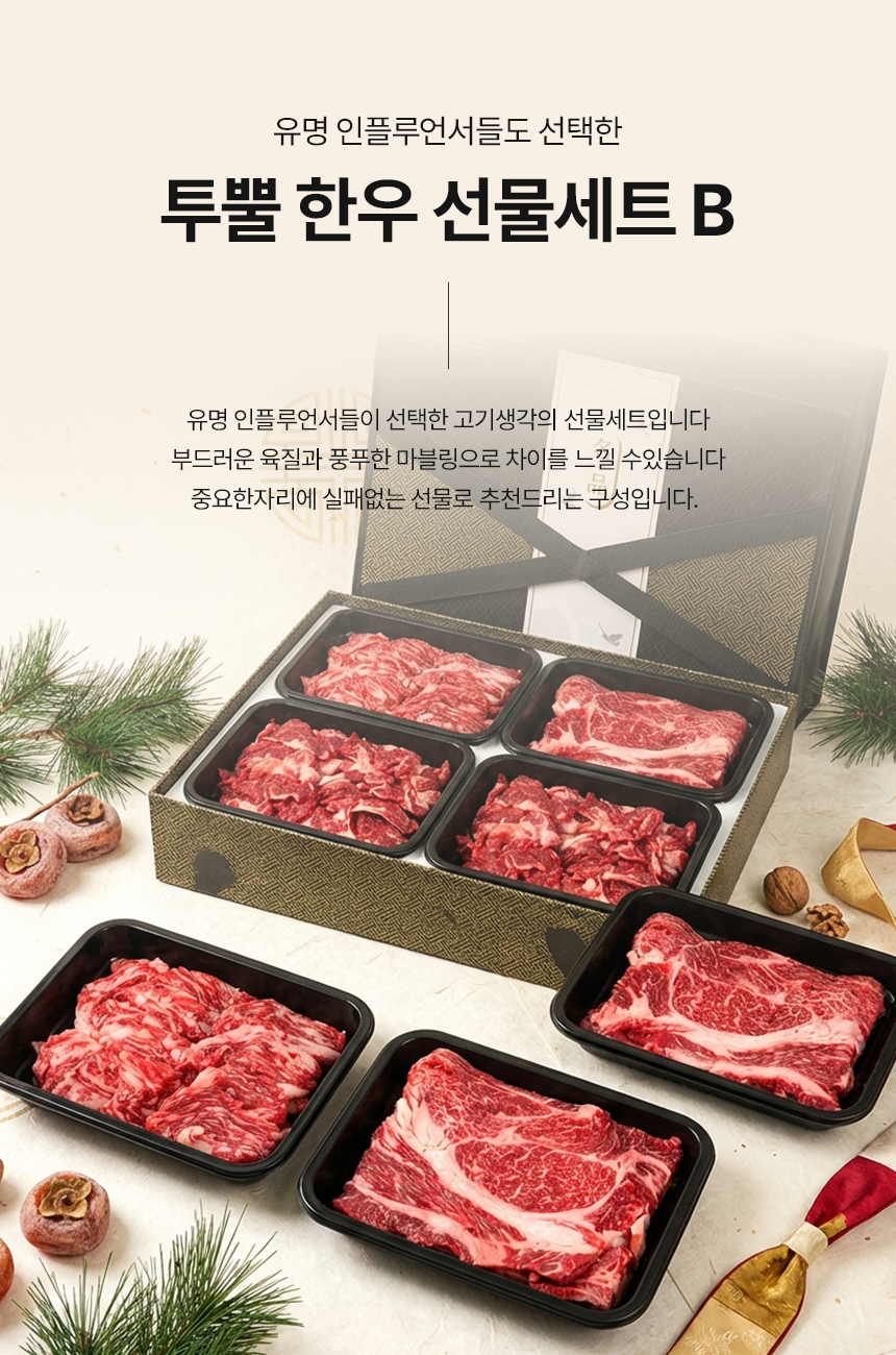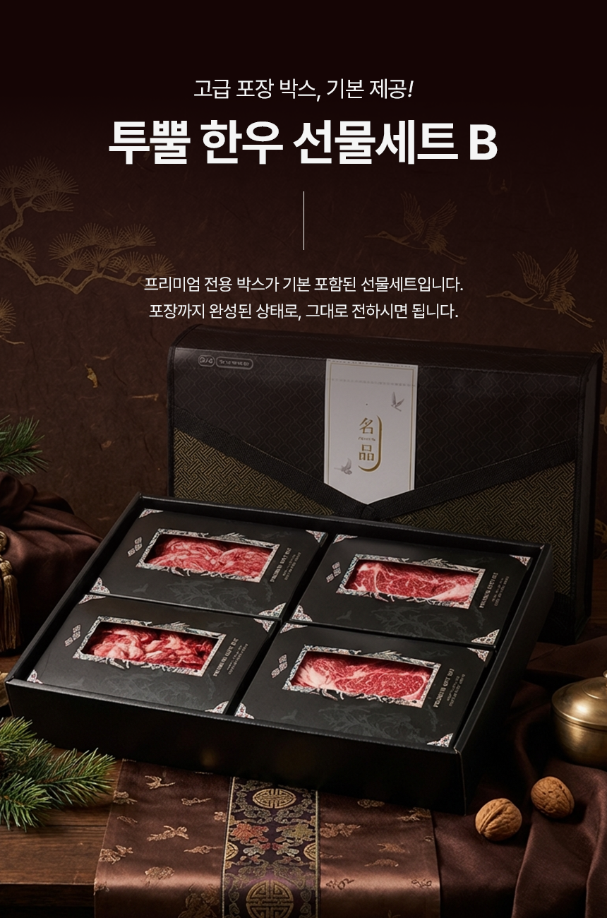 - 한우선물세트는 모양을 잡기 위해서 특수부위의 중량이 정해저 있지 않은점 양해 부탁드리며 제품 총 중량은 맞춰 드립니다.