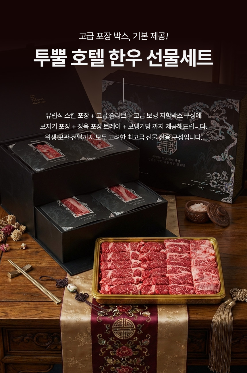 - 한우선물세트는 모양을 잡기 위해서 특수부위의 중량이 정해저 있지 않은점 양해 부탁드리며 제품 총 중량은 맞춰 드립니다.