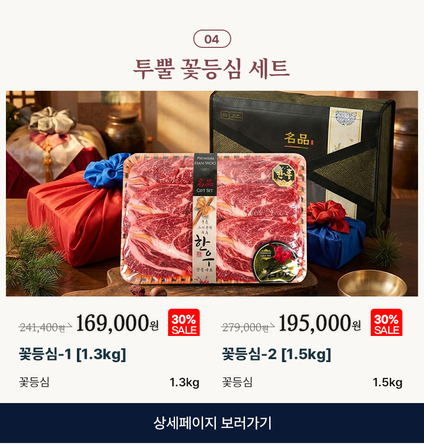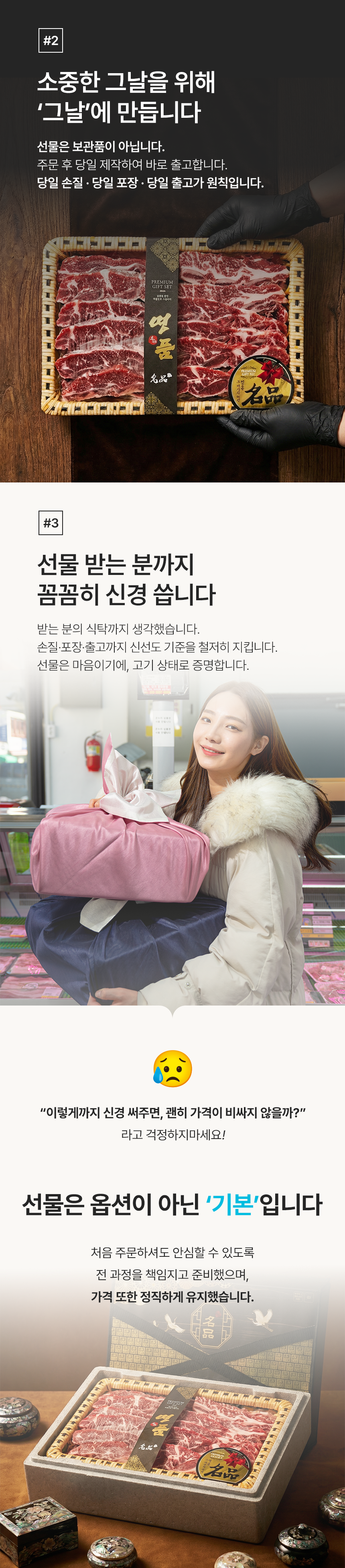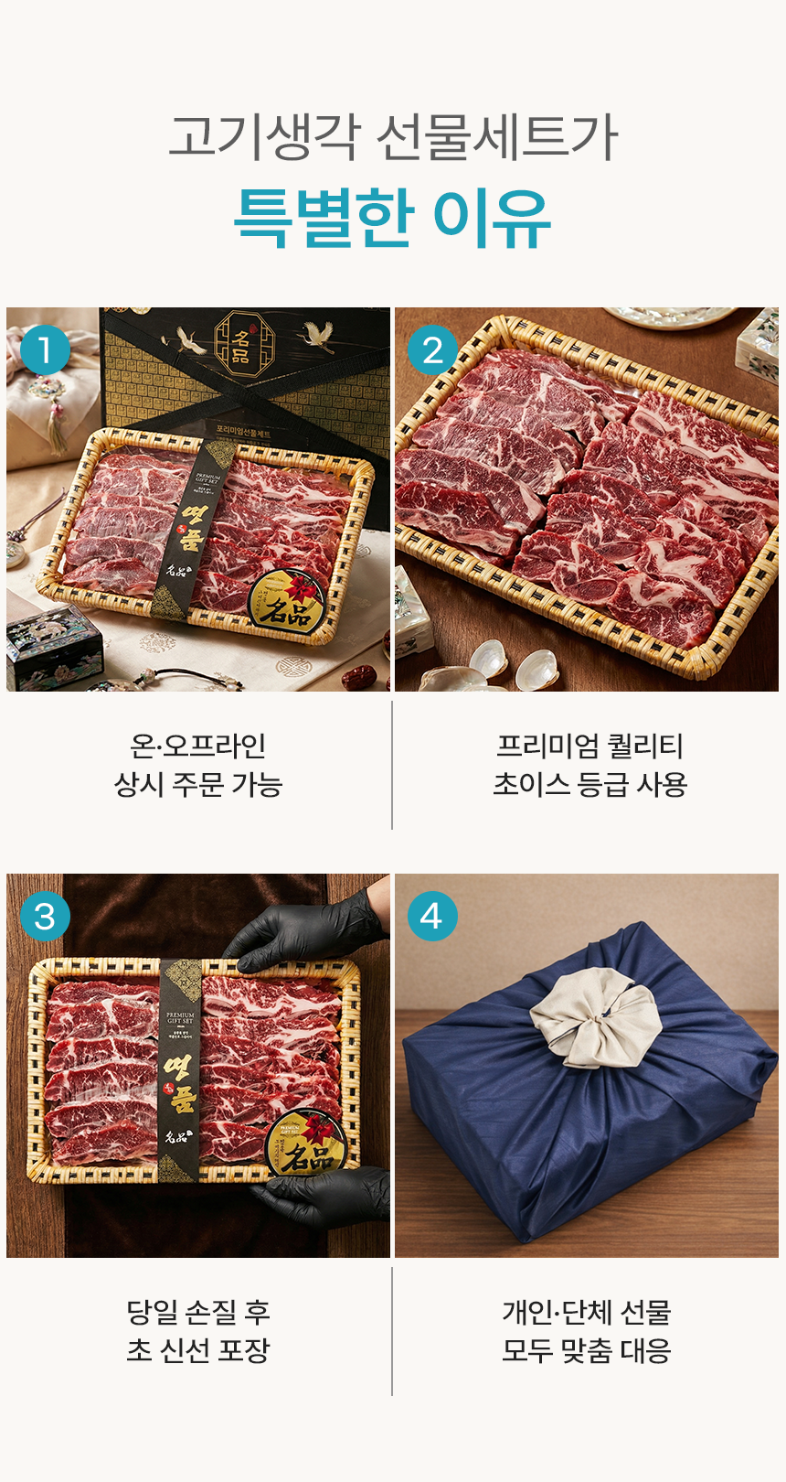 - 선물세트는 모양을 잡기 위해서 특수부위의 중량이 정해저 있지 않은점 양해 부탁드리며 제품 총 중량은 맞춰 드립니다.
